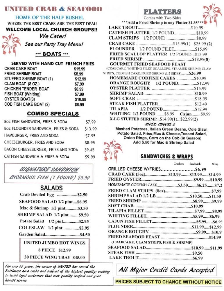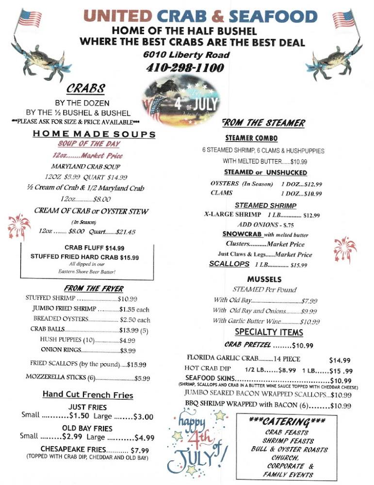 Welcome to United Crab & Seafood, your premier crabhouse in Gwynn Oak, MD! Indulge in a delightful selection of steamed and live blue crabs, snow crabs, and an array of fresh seafood including shrimp, mussels, clams, and oysters. Our scratch-made kitchen offers a diverse menu filled with mouth-watering items like crab cakes, stuffed fried hard crabs, and gourmet seafood platters. Enjoy our cozy atmosphere with outdoor seating and convenient takeout options. Whether you’re craving a hearty seafood sub or a platter of fried shrimp, United Crab & Seafood is the perfect destination for seafood lovers. Come taste the difference!